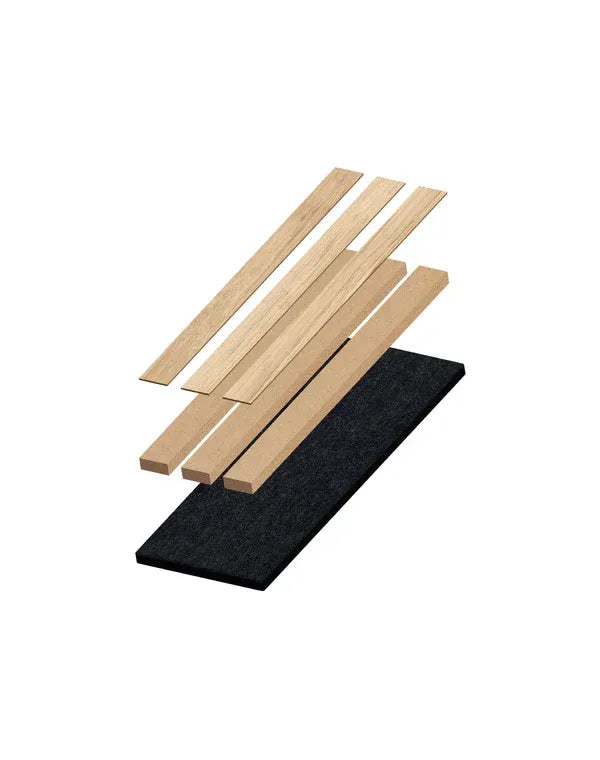 Each slat is manufactured with an MDF base, ensuring durability and strength, providing a sophisticated and versatile finish for any environment.